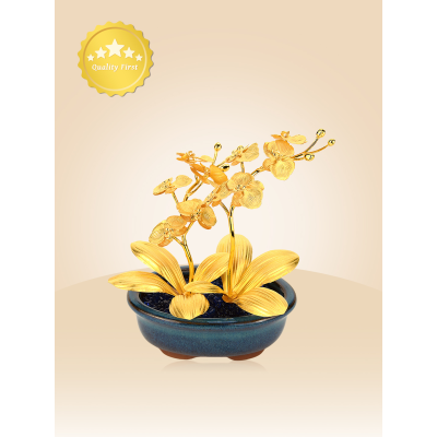 24K Gold Leaf Gold Phalaenopsis Orchid Desk Ornament For Grand Opening/Housewarming Gifts