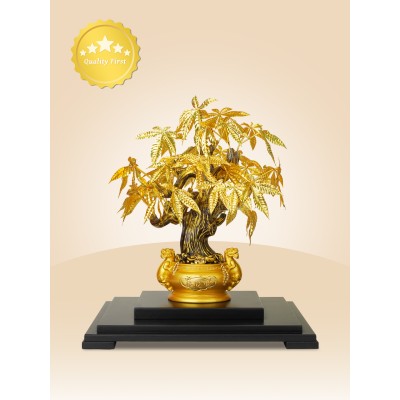 24K Gold Leaf Gold Luxurious Pixiu Money Tree Desk Ornament For Grand Opening/Housewarming Gifts