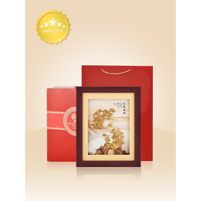 24K Gold Leaf Double Dragon Wall Art For Corporate Gifts