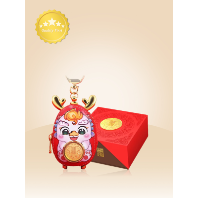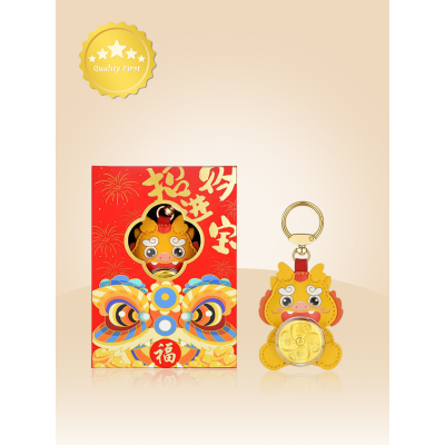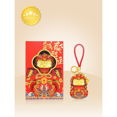 24k Pure Gold "Good Luck" Little Fortune Dragon Keychain Bag Mobile Phone Decoration Plaything Pendant